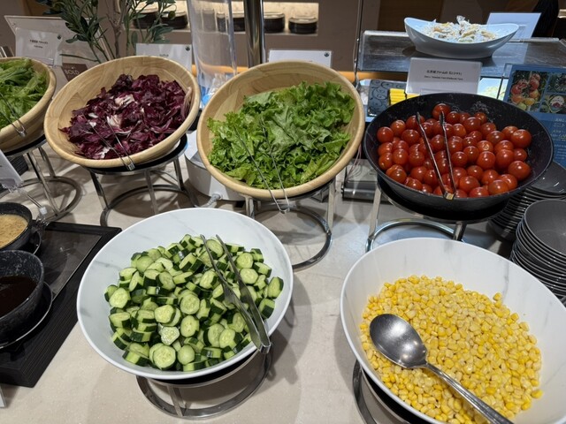 調理されているサラダは、ドレッシングをかけずに美味しく様々な野菜、海藻、豆類まで食べる事ができます