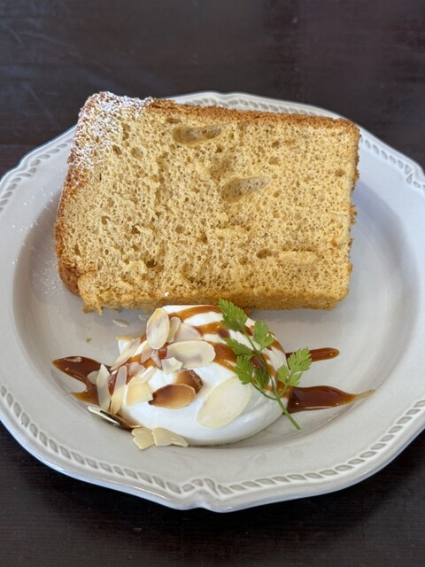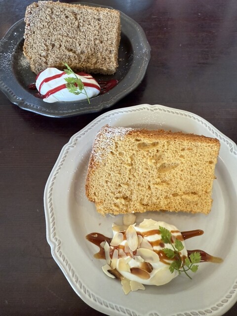 おしゃべりをしていると、お隣りの席の方が、シフォンケーキを注文!