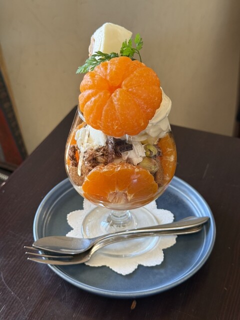 「宮崎県産みかんとレアチーズのパフェ」は、どうやってみかんが、落ちない様になっているのかと不思議でした 落ちない訳は、秘密にしておきますね