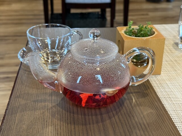 飲み物のローゼルハーブティーは、自家菜園で無農薬で育てていらっしゃる木だそうで、期間限定でした