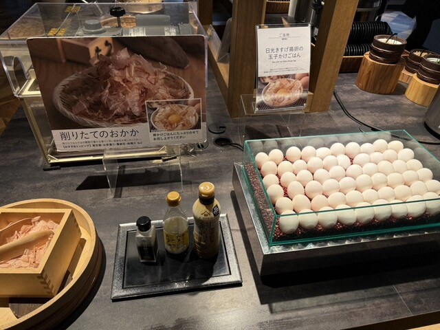 削りたての鰹節が出ていて、これだけで食べても美味しいですが、更に卵かけご飯にどうぞ!との事