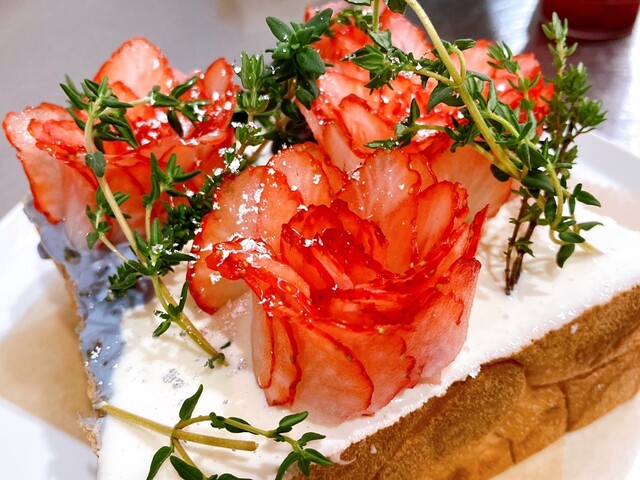 とても繊細な技術で作られたいちごのお花が大変美しいトーストでした。