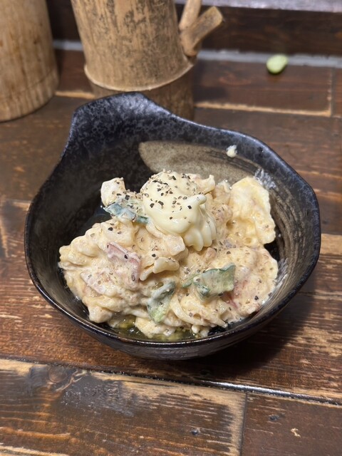 もつ焼きにはマカロニサラダアテにもなるし、箸休めにもなる。