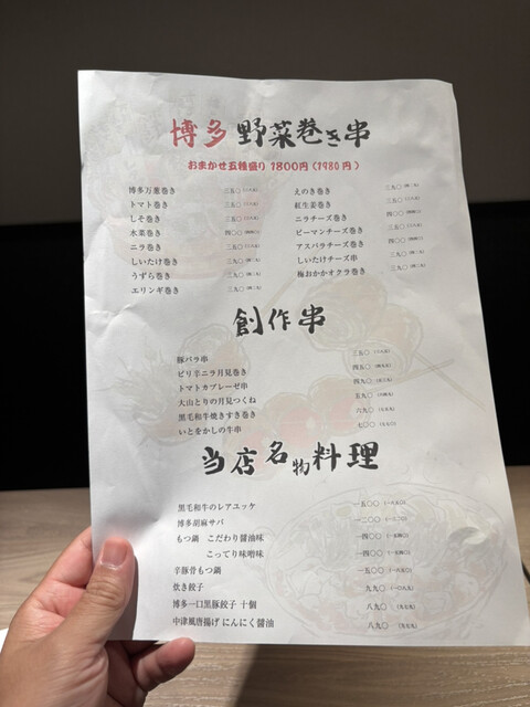 ・こちらの1番人気はなんといっても博多野菜巻き串。