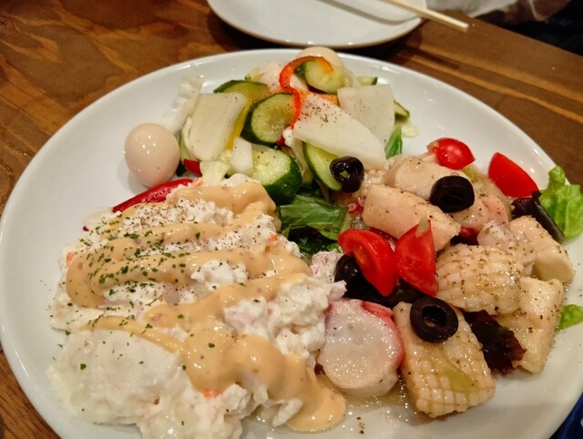 もともとは他のイタリアンが満席で、このお店を予約して初めての来店。3500 円の飲み放題コース。前菜2皿にサラダ、ソーセージ、選べるピザ3枚、パスタとどれも美味しくて、ちょうど良い量でした。飲み物も豊富で、生ビールも飲めます。店内の雰囲気もよくて、金曜夜だったので、満席で週末や忘年会に利用するなら早目の予約は必須かもしれません。他のテーブルでは、サプライズで花火付のバースデープレートがでてきて、ポップな音楽と合わせて盛り上がってました。20代や30代の女性の小グループも沢山いて、コスパもよいので、次もまた来たいと思えたお店でした。オススメです。