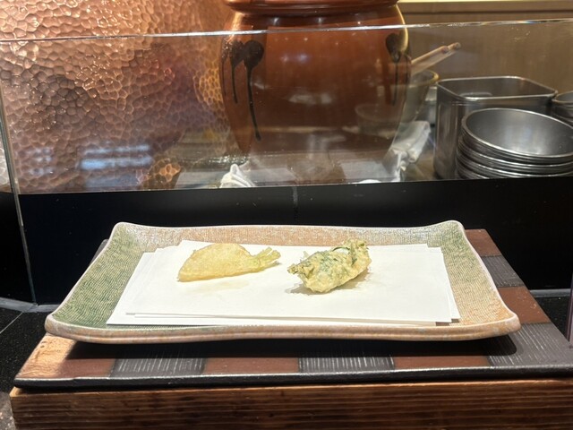 目の前で天ぷらを揚げてくれる