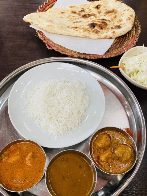休日ランチに。少し遅めの時間でしたが、到着時は満席で少しだけ待ちました。ランチバイキングと、スペシャルメニューの中からゴビゴーシュトをオーダー。バイキングのカレーは、アルベイガン(ナスとじゃがいも)、チキンバダミ(チキンとアーモンド)、ホワイトロビア(黒目豆)の3種類。ナス好きとしてはアルベイガンがツボでした。スパイスが染みてておいしい♪チキンカレーはアーモンドのコクが出ていました。ナンは小さめサイズのベイビーナンにしてもらいました。ハンディさんはナンもおいしい!甘くなくて、油控えめ、ふんわりし過ぎないけどやわらかくて、絶妙です。スペシャルのゴビゴーシュトは、カリフラワーとマトンのカレー。マトンの旨みととろけたカリフラワーが一体化していて、旨みのかたまりと言えるカレー。一口食べて、そのおいしさに悶絶でした!ロティともよく合う味。いつ来ても何を食べてもほんとおいしくて、安定の満足度でした。