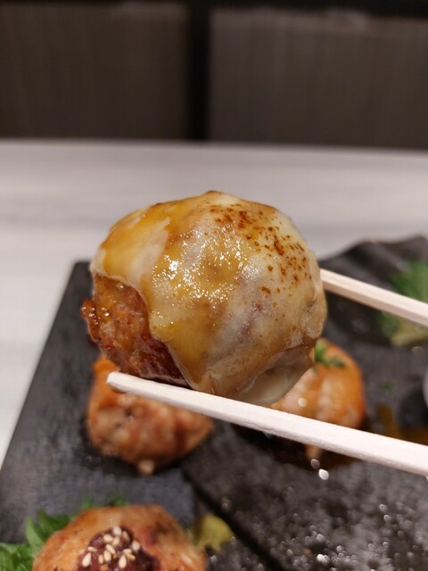 平日の17:00~お店にいったけど、比較的空いていて過ごしやすかったです。つくね盛り合わせ 9個注文しました。ボリュームあってつくねジューシーで美味しい。