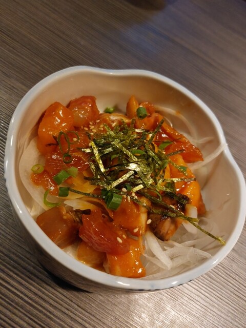 ビルの9階にあり、景色綺麗だったよ。完全個室で広いので、団体で行くのもオススメしたい。月曜日の夕方に来店しました。17:00~19:00の時間帯は比較的空いていて落ち着いて過ごせました。コースは2時間飲み放題・¥3,500~ありました。他は牛タンや海鮮ユッケ等、お酒のおつまみを多数注文しました。(お通しはとろろでした。)これ美味しい。ここのイチオシはへぎ蕎麦らしいので、是非頼んでみてほしい。1品料理は和食中心に注文しました。日本酒に合う味付けで美味しかったよ。駅から少し歩くけど、そこまで遠くないし、店内綺麗で、個室なので、全然リピートしてもいい。ご馳走さまでした。