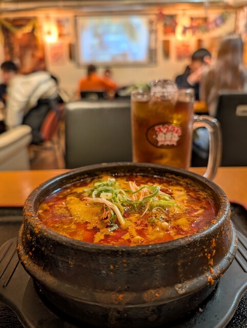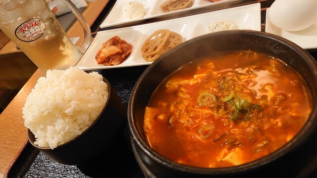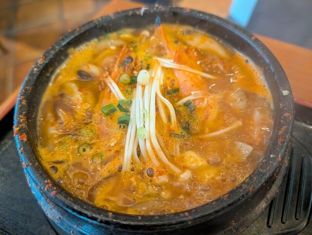 鳥コムタンスープをはじめ、キムチサムギョプサル等、お昼の定食も夜の一品も美味しいお店です。
