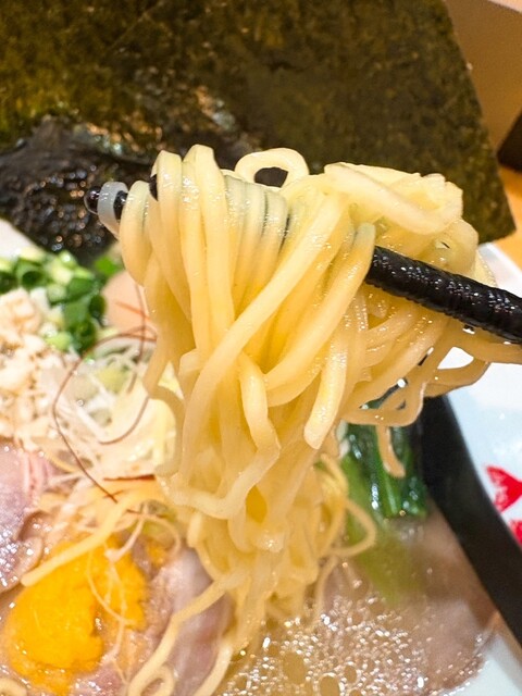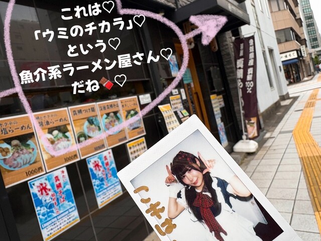 イベント向かい途中@中継駅(秋葉原)♡かなり気になっていた♡ 魚介系ラーメン『ウミのチカラ』に♡ これは…何?ガール(ちょこチャン)と♡ 来たよん!♡(ぼっちオタクの♡しがない妄想w)♡駅から少し歩きますが♡看板♡のぼり旗♡ですくお店わかりました(^^)v♡夜の営業は♡金・土曜日のみ(当面?)17:00オープン♡少し早く着いたので♡少し待って♡開凸入店٩( ᐛ )و全部(丼いっぱいのチャーシュー♡味玉♡海苔♡野菜類)載せ的な『特選・真鯛らーめん』のチケットを購入したよん!♡店員さん(ワンオペ)にチケットを渡して♡まもなく♡『真鯛らーめん』キター٩( ᐛ )و香り香りが♡魚魚魚♡いいねー!♡スープを一口♡真鯛を実感しました♡強めの?塩味♡美味しい╰(*´︶`*)╯♡よく見たら♡ 鯛のほぐし身も乗ってる♡それから♡柚子の刻んだもの♡香りが良い♡(柚子が苦手な方は♡注文の際♡お話した方が良いかもね♡私は大好きですよ!♡)チャーシューも和らぐ♡美味でちた!♡薬味に♡エビごま唐辛子(?)初遭遇かな(?)たぶんw♡最後の方に♡これ入れたら♡味変も楽しめて♡良き良きでちた♡丼物も♡いろいろあるみたい♡また♡来るフラグですね♡(^з^)-☆