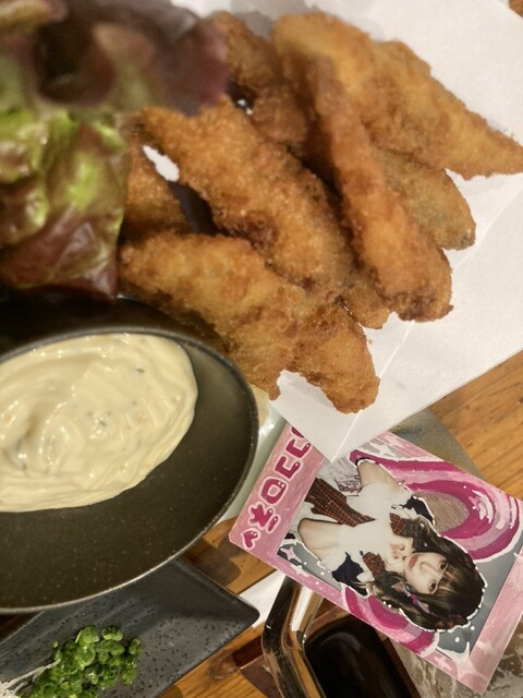 パート⑶の続き!♡佐賀滞在中♡『 元気じるし』に♡ちょこチャン&まなみりかチャン&るりチャン♡と再度入店(3人?ぼっちオタクの壮大妄想…)*\(^o^)/*♡お仕事後♡ビール♡美味しい♡前回気になっていた『活あじ造り』を注文!♡刺し身♡美味しい♡刺し身以外は油で揚げ♡カリカリ♡美味しい♡無駄なく♡活あじを♡堪能しまちた^_−☆