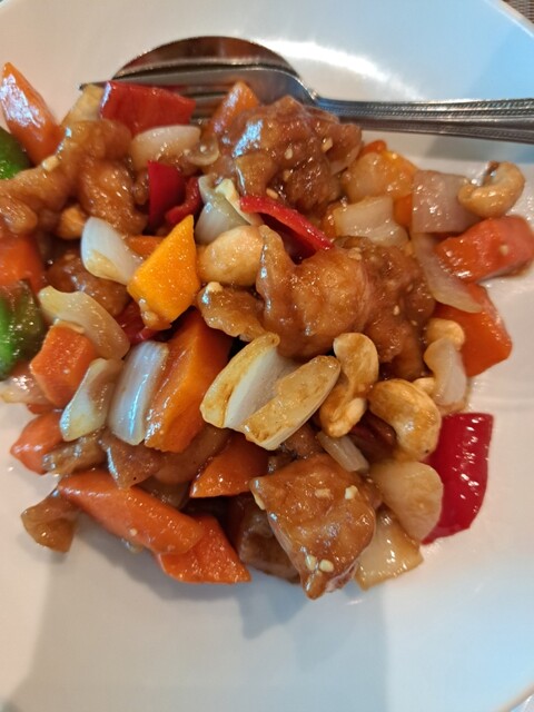 カシューナッツ、鶏肉、人参、パプリカ、玉ねぎ