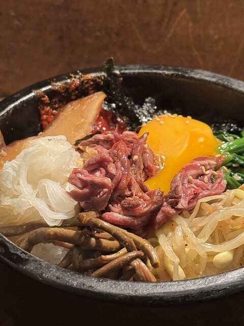 シメは石焼ユッケピビンパにしたが、辛さは控えめで辛いのが苦手な人でも食べられると思う。