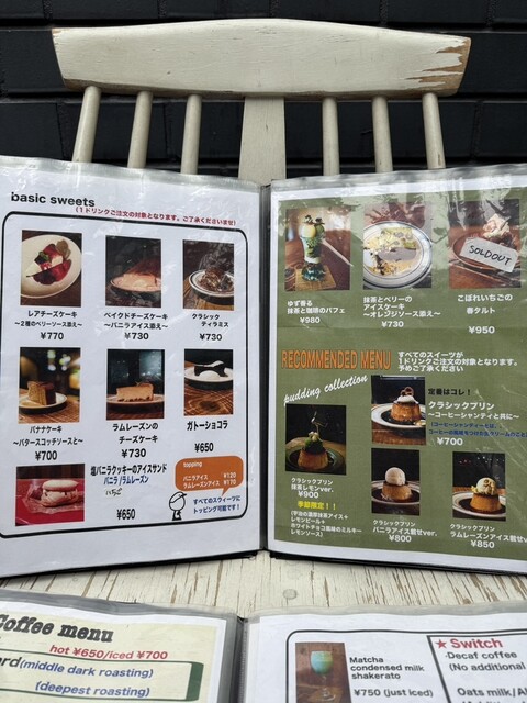 クラシックプリン、ゆず香る抹茶とコーヒーのパフェ、スタンダードアイスコーヒー