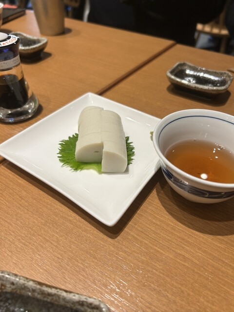 今回は、いつもの玉子焼きにくわえ、板わさを酒のつまみに、蕎麦は天ぷら蕎麦をいただきました。