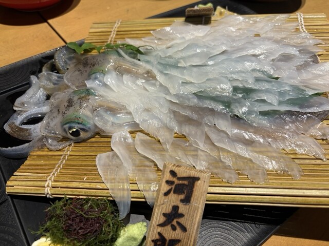 妻と娘が博多に遊びに来た際に、どうしても美味しいイカと魚が食べたいとの事で、私も初めてだった河太郎に行くことにしました。
