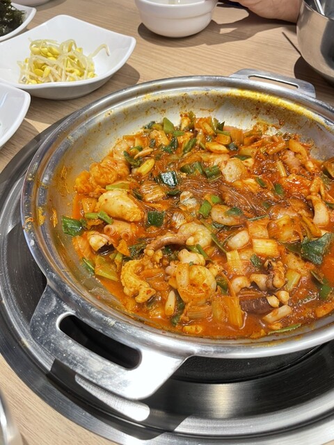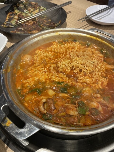 ナッコプセ(辛さは普通)、サリ麺、海鮮チヂミでお腹いっぱい。