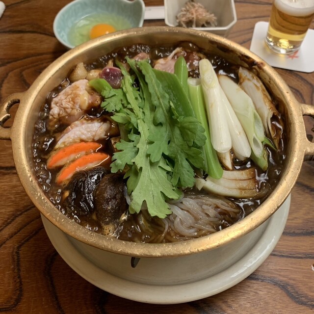 名古屋に来たーって思う濃い色のお味噌を入れて、お肉やお野菜を入れて、グツグツ煮込みます。