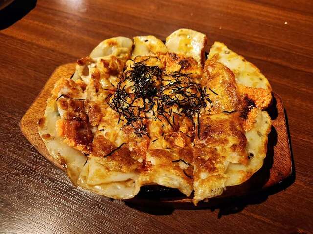 もちもちしたちょっと厚い餃子の皮みたいな生地の上に具材が乗ってる美味しいやつ