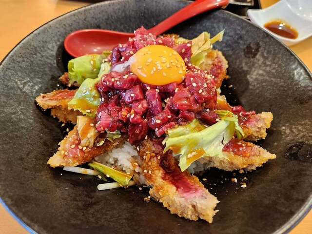 男の牛かつゆっけ丼
