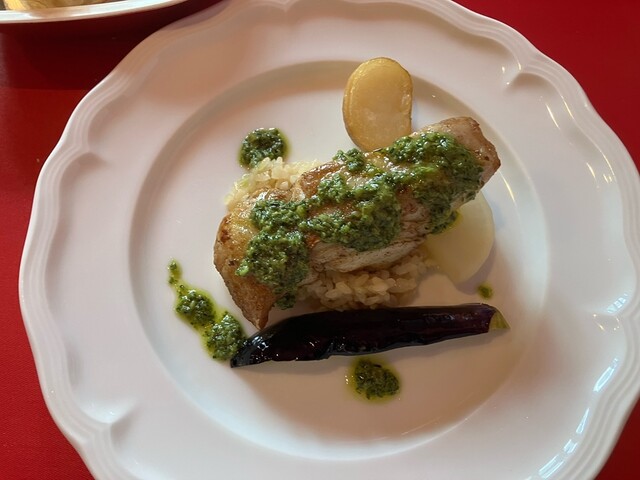 真ダラのふんわりとした身に、香ばしいナッツとパセリの香りが溶け込む初体験のソース、カフェ ド パリが絶妙。ガーリックの風味が後からふわりと広がり、コクがありながら軽やかな余韻でした。