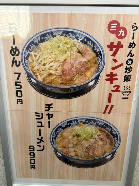 昭和区の人気ラーメン店「らーめん三吉」が『ちゃーらー三九』としてリニューアルオープンしたらしく、店内は明るく,清潔で女性1人でも気軽に立ち寄れそうなお店です☆☆