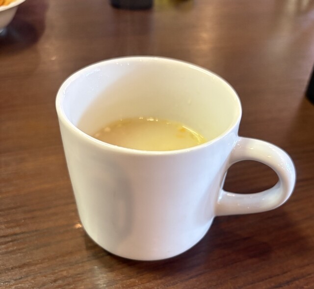 まずは直ぐにサービスの熱々チキンスープが到着。