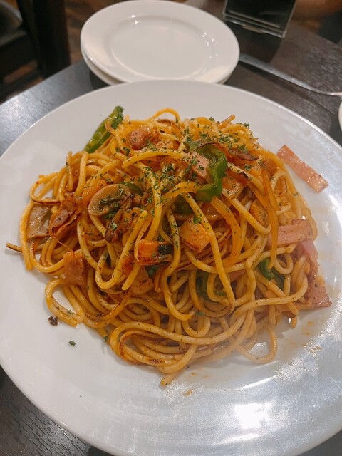 ハンバーグは他には無い美味しさで、ナポリタンは大盛り頼んでないのにお皿いっぱい!おなかいっぱい❣️
