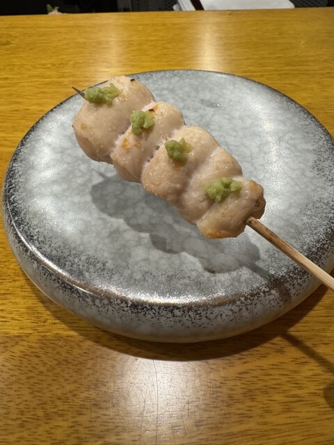 焼きたての胸肉は驚くほど柔らかく、わさびの香りがふわっと広がる。辛さは控えめで食べやすい一品。