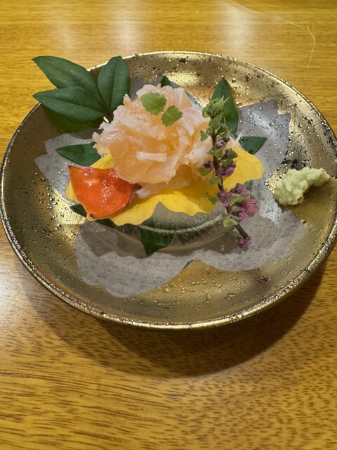 ぷりっぷりの食感に驚く刺身。甘みが強く、鮮度のよさがダイレクトに感じられる贅沢な一皿。