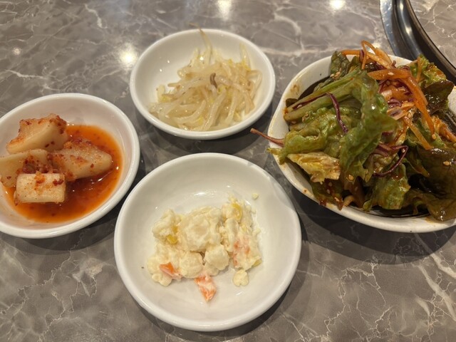 箸休めのカクテキやナムル、優しく染み渡るわかめスープが最高の相棒。彩り豊かな小皿からメインまで、まさに幸福感に包まれるランチタイムでした。