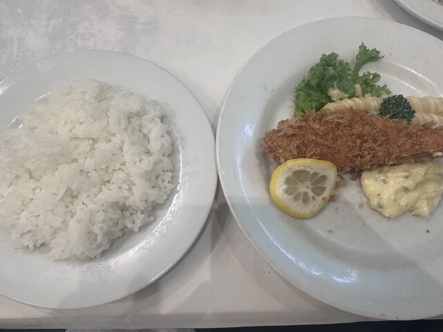 (コーンスープ、サーモンフライ、牛タンシチュー、サラダ、珈琲)