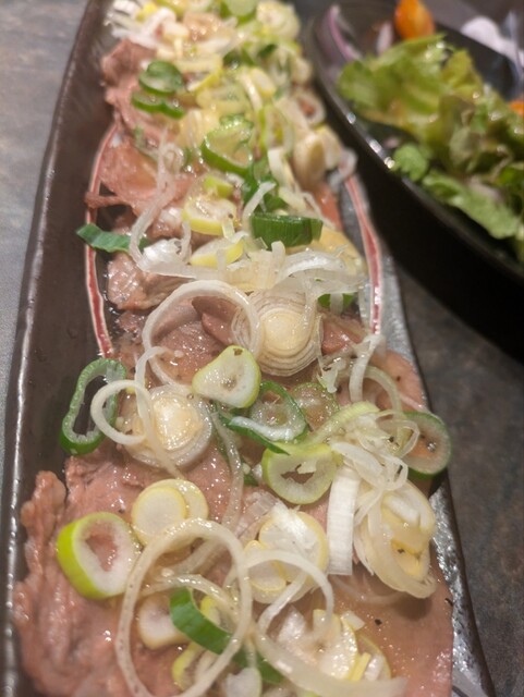 炙り牛タンにはパンチの効いたサルサソースを添えていただきました。