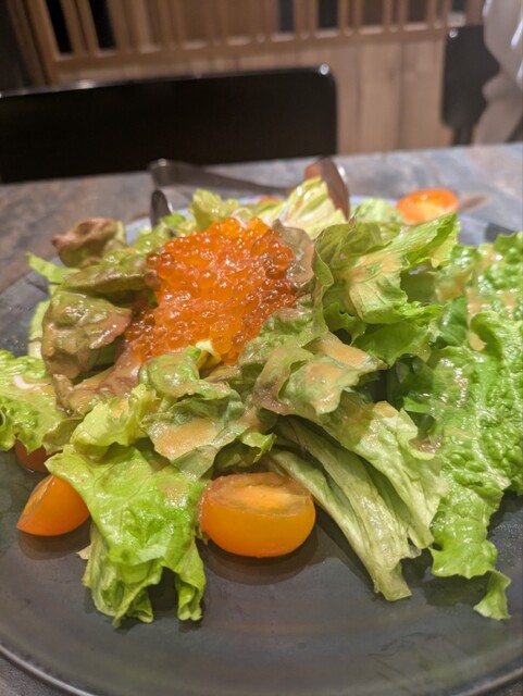 和風サラダにはたっぷりのイクラがのってました。味はイクラの塩味もありしっかりめ。