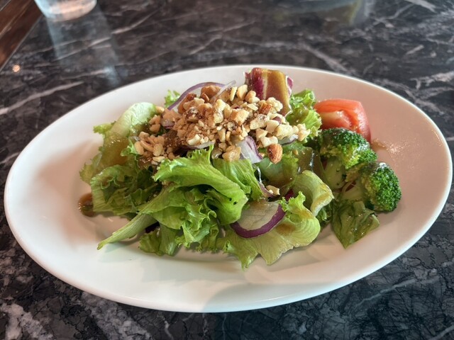 盛り付けの見た目は、ハンバーグが小さく見えて不安でしたが、しっかりと肉肉しさを感じられる存在感のあるパティで、新鮮な野菜ともよく合い、絶品のハンバーガーでした。
