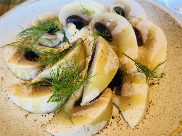 モバイルオーダーで、まずビールを注文し マッシュルームサラダ前菜後、ランチセットを頼みました メインはハンバーグ 相方は本日のお魚にしました セットにはオニオンスープとパンかライス 食後のドリンクが付いて2,000円 ハンバーグはジューシーで焦がしバターのソースが特徴的でサラッとした味で美味しいです お魚はメダイと夏野のグリル酸味を抑えたコクがある味 全体的に上品な盛り付けと分量です テーブルも小さ目なのでお料理とグラスで満杯になります