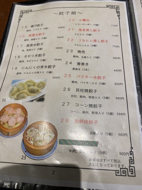 一階はカウンター中心で、二階がテーブル席と円卓があります 早速 餃子と大葉入餃子を頼みビールとやりました 餃子はモチモチ皮で丁度良い厚さ、中はしっとりで味は比較的アッサリめです