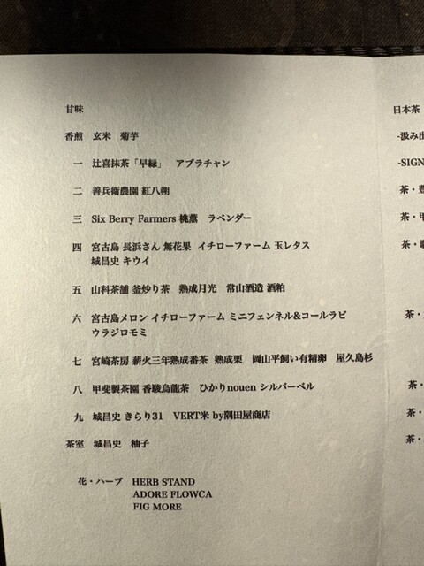 見た目の美しさは抜群です。味も11皿の中では1番ストレートで美味しく、みかん塩も新しい味覚でした。ただ羊羹としては想像通りの味でもあったため、期待値高過ぎた分3点としました。