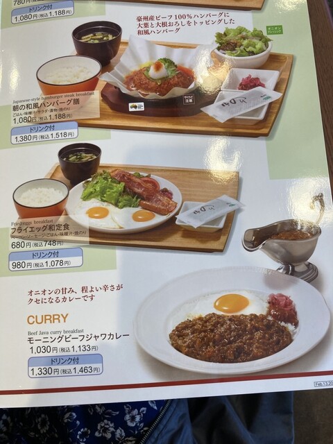 モーニングのメニュー