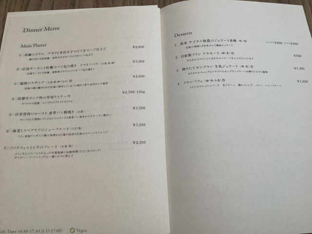 ディナーメニュー
