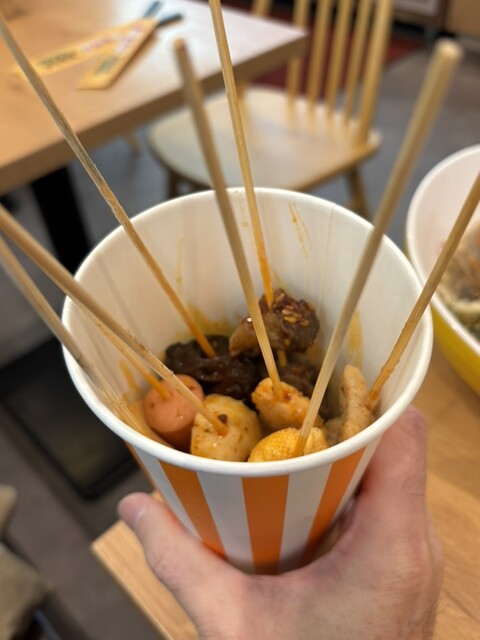 最大の特徴はセルフスタイル。トレイを持ち、約50種類の具材から好きなものを選ぶ。肉、野菜、海鮮、練り物、豆腐、珍味まで揃い、つい取りすぎてしまう。麺も5種類から選択可能で、複数入れられるのが楽しい。