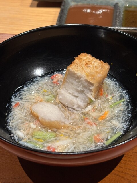 驚くほど軽やかで、揚げ物とは思えない口当たりだ。
