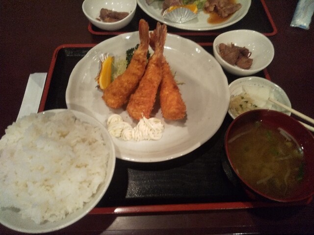 今回の来店は20時ごろだったので、特に待たずに着席、海老フライ定食を頼みました。