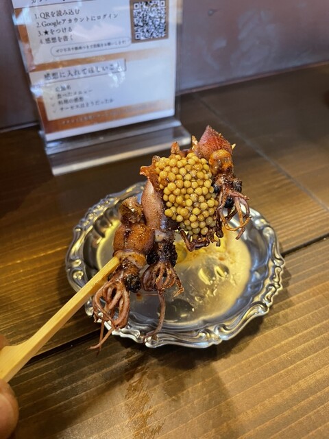 ぷりっぷりな身が目の前で炭火で焼かれて、