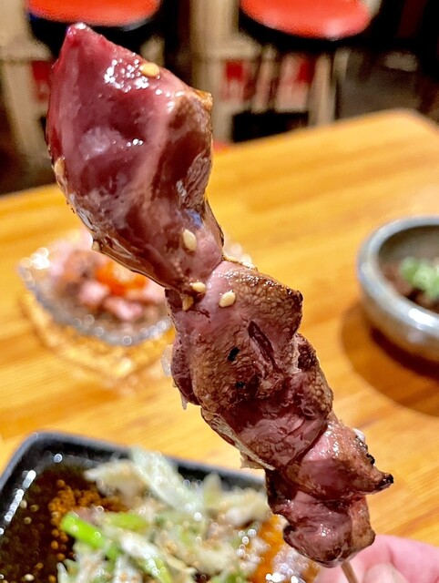 名物のレバテキは、表面を香ばしく炙り、中はとろける絶妙な火入れ。ネギとごま油の塩ダレがレバーの旨みを引き立て、クセや臭みもなく、苦手な方でも思わず箸が進む一品。