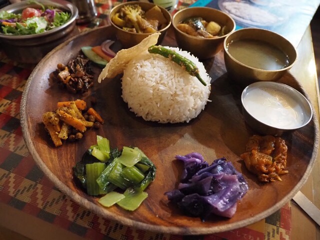 シンプルな野菜のダルバートもありますが色とりどりのお野菜が食べられるのはスペシャルなので迷わずに一択です。