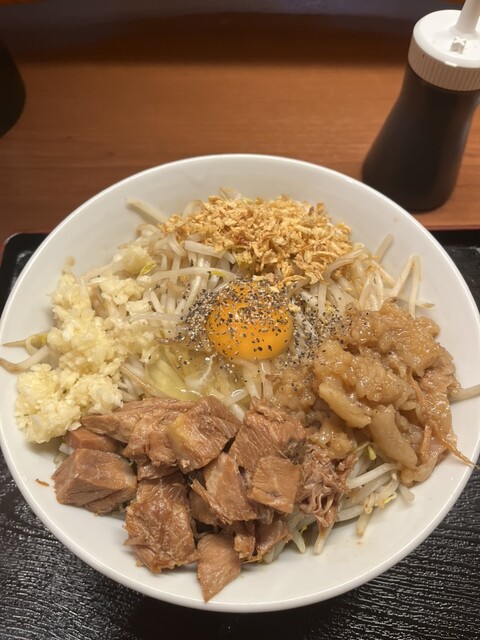学割のまぜ麺を食べました。600円で頼むことが出来て、まぜ麺の他にもラーメンが学割で食べることが出来ます。大盛りは+100円、特盛が+200円で出来ました。