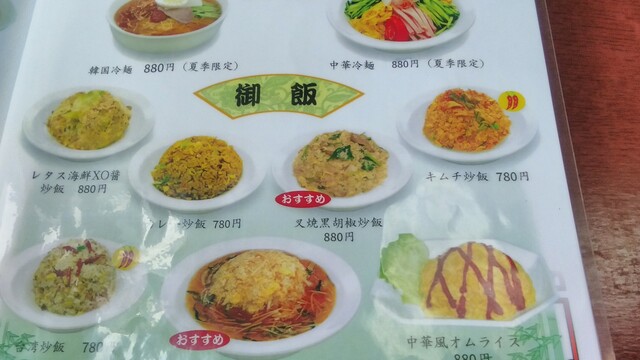 強火で素早く炒めて手早く提供。チャーハンというのはこうあるべき料理なのではないか。メニューには豊富なバリエーションのチャーハンがリストされている。