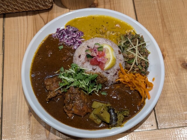 かぼちゃのココナッツカレーはかなり甘いけど他と合わせて食べるといろいろな味が楽しめる。